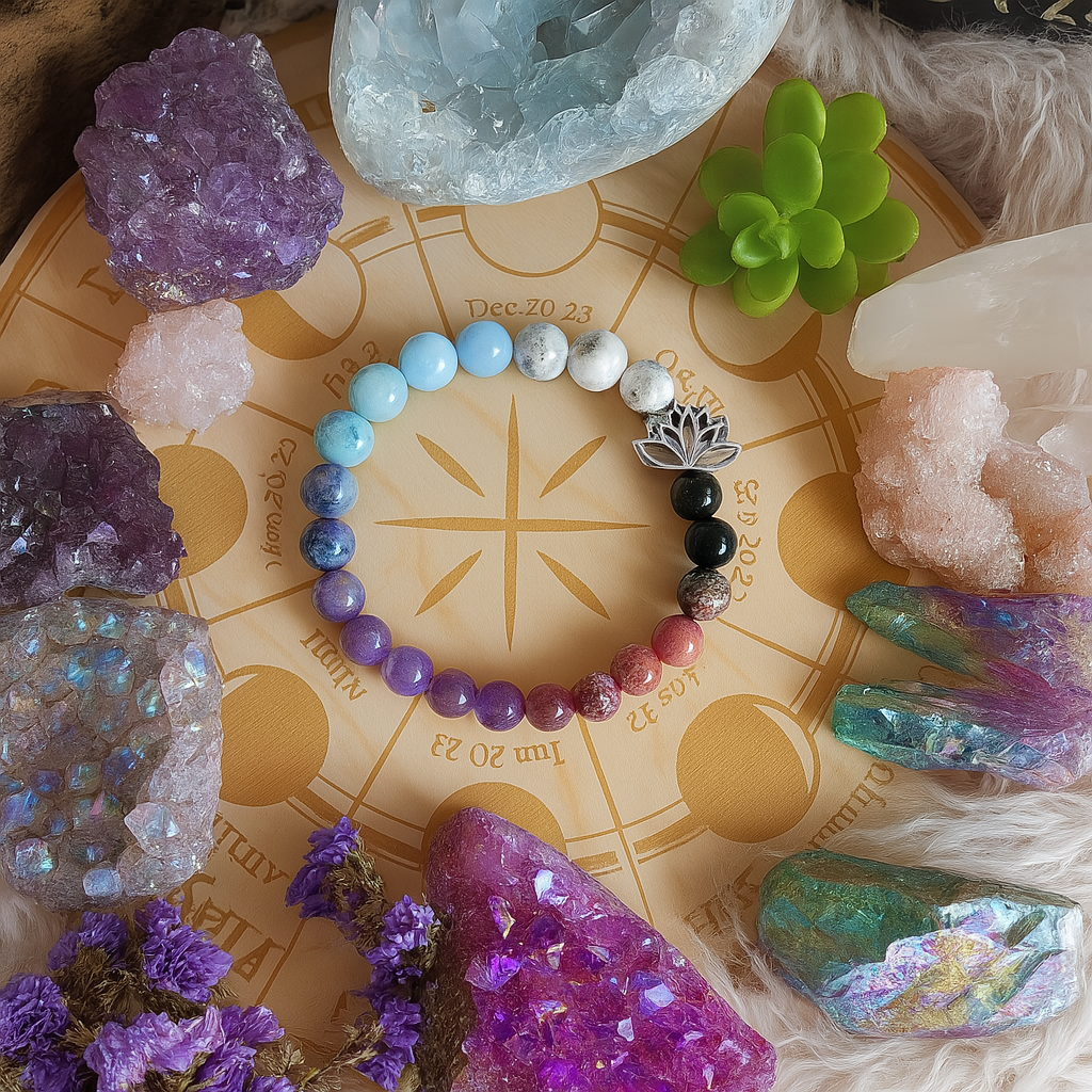 Armband med Ametist, Lepidolit och Howlit – Energi